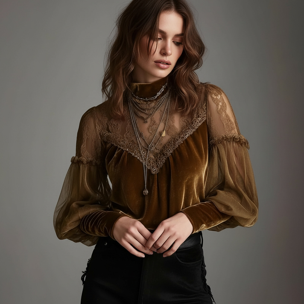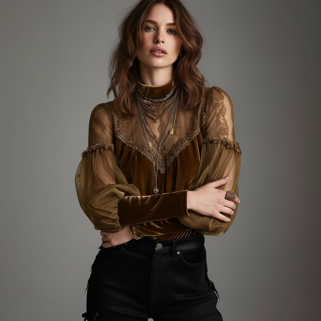 Mit AURELIA™ | Elegante Samtbluse mit Spitzenakzent entscheiden Sie sich nicht nur für ein Produkt – Sie entscheiden sich für ein Leben voller Freiheit, Eleganz und strahlender Freude.