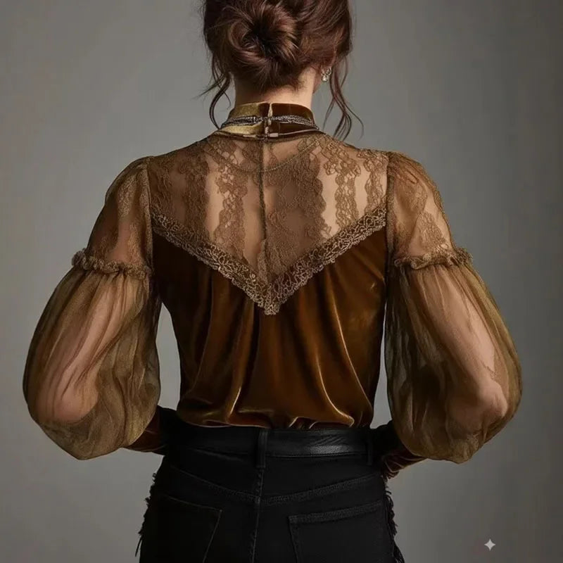 AURELIA™ | Elegante Samtbluse mit Spitzenakzent