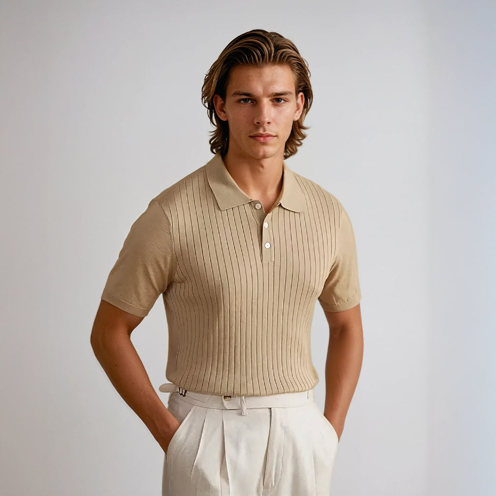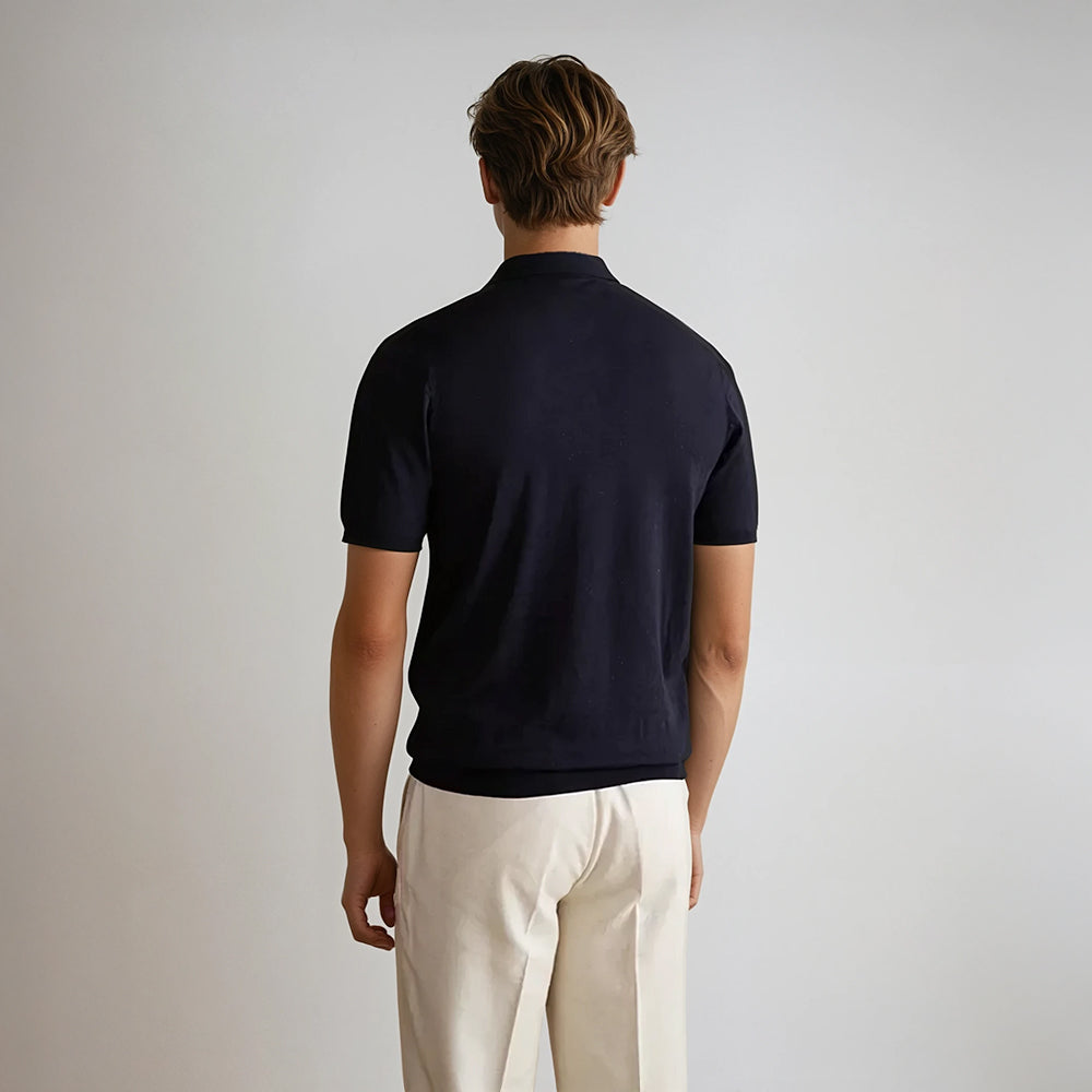 Eine Hommage an die lässige Eleganz der Côte d’Azur, dieses Polo-Shirt ist aus einer luxuriösen Mischung aus Lyocell und Hanf gefertigt. Seine gerippte Textur verleiht einer klassischen Silhouette Tiefe, während sein leichtes Material optimalen Komfort selbst unter der mediterranen Sonne garantiert.