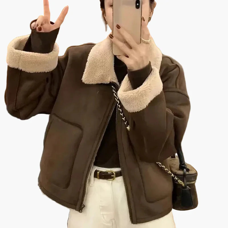 Damen Kurzjacke im Urban Style mit lässigem Schnitt und warmem Kragen – Ideal für Alltag und Freizeit