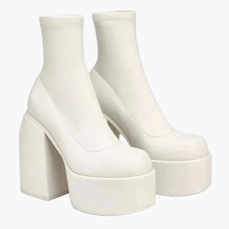 Damen Plateaustiefeletten mit Blockabsatz – Modische High Heel Stiefel für Party und Alltag