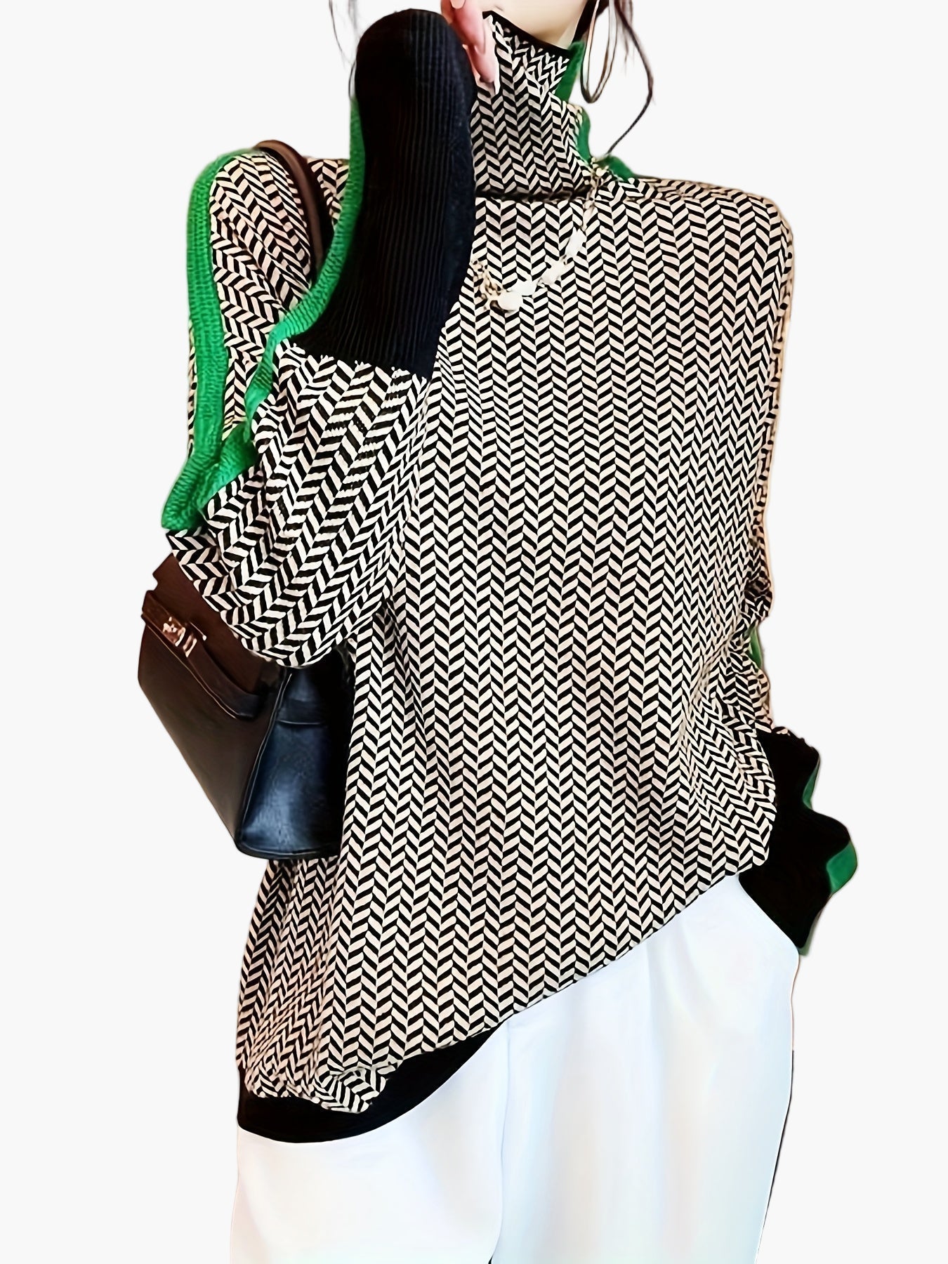 Mit seinem modischen Patchwork-Design und den langen Ärmeln ist dieser Pullover ein echtes Statement-Piece, das jedes Outfit aufwertet. Kombinieren Sie ihn mit einer schlichten Hose oder Jeans für einen trendigen, aber dennoch gemütlichen Auftritt. Der hohe Kragen schützt zusätzlich vor Wind und Kälte und macht den Pullover zum perfekten Begleiter in der kalten Jahreszeit.