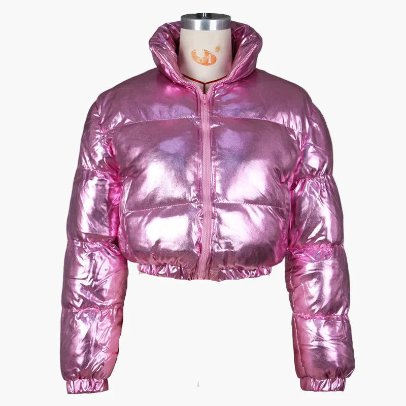 Setzen Sie ein modisches Statement mit dieser glänzenden, kurz geschnittenen Damen Steppjacke im trendigen Streetwear-Stil. Das auffällige, reflektierende Design macht diese Jacke zum perfekten Begleiter für stilbewusste Frauen, die Wert auf ein modernes, urbanes Outfit legen. Die figurbetonte Passform und der hohe Kragen sorgen für einen eleganten Look, während die praktische Länge und die elastischen Bündchen optimalen Komfort bieten. Ideal für kühle Tage in der Stadt, zum Ausgehen oder als Eyecatcher für Freizeit-Looks – diese Jacke bringt Glamour und Funktionalität zusammen. Die Jacke lässt sich vielseitig kombinieren, ob sportlich mit Jeans oder schick mit einem Einteiler. Werden Sie zum Hingucker in jeder Situation!