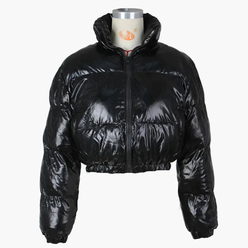 Damen Steppjacke Kurze Trendjacke Glänzend Streetwear Wintermode