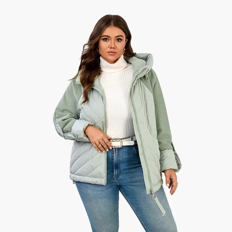 Damen Steppjacke mit Kapuze und modischen Details – Urbaner Winterstil für Plus Size