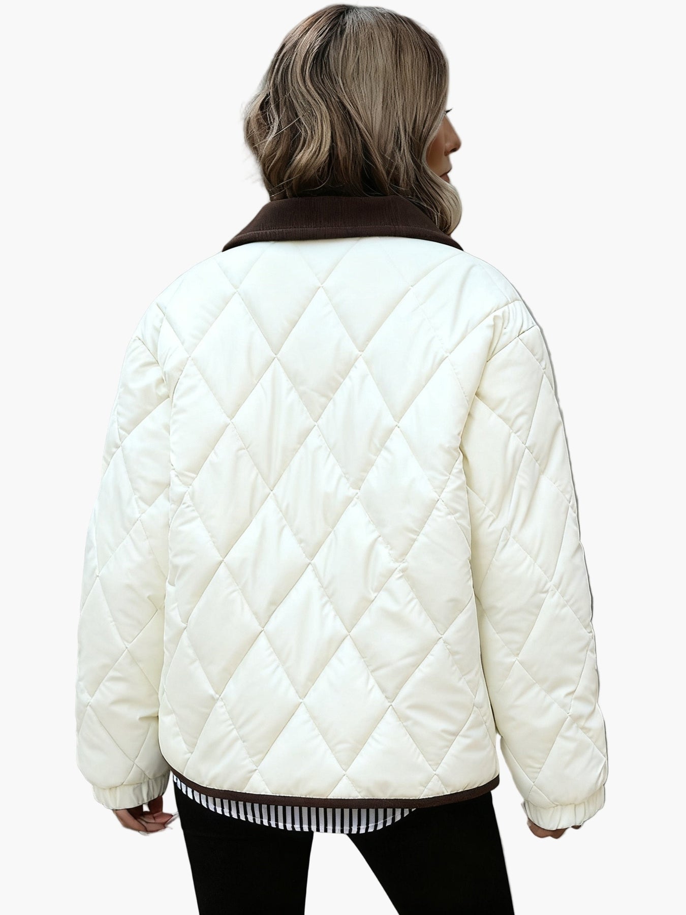 Damen Steppjacke Vintage Stil Übergangsjacke mit Kontrastkragen – Modisch & Vielseitig für Alltag und Freizeit