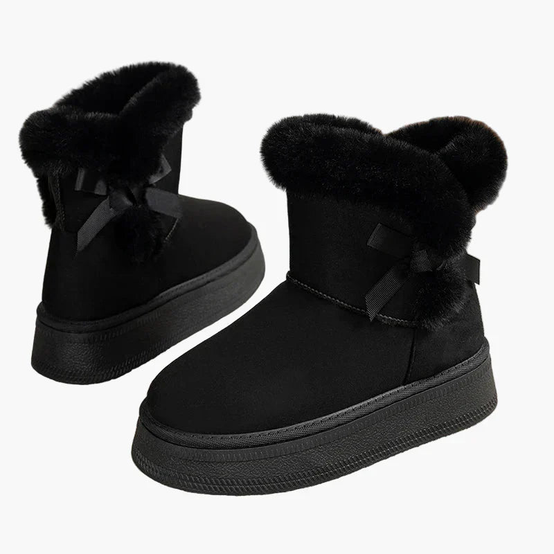 Damen Winter Stiefeletten mit Plüschkragen und Schleife – Modische warme Boots für Alltag und Freizeit