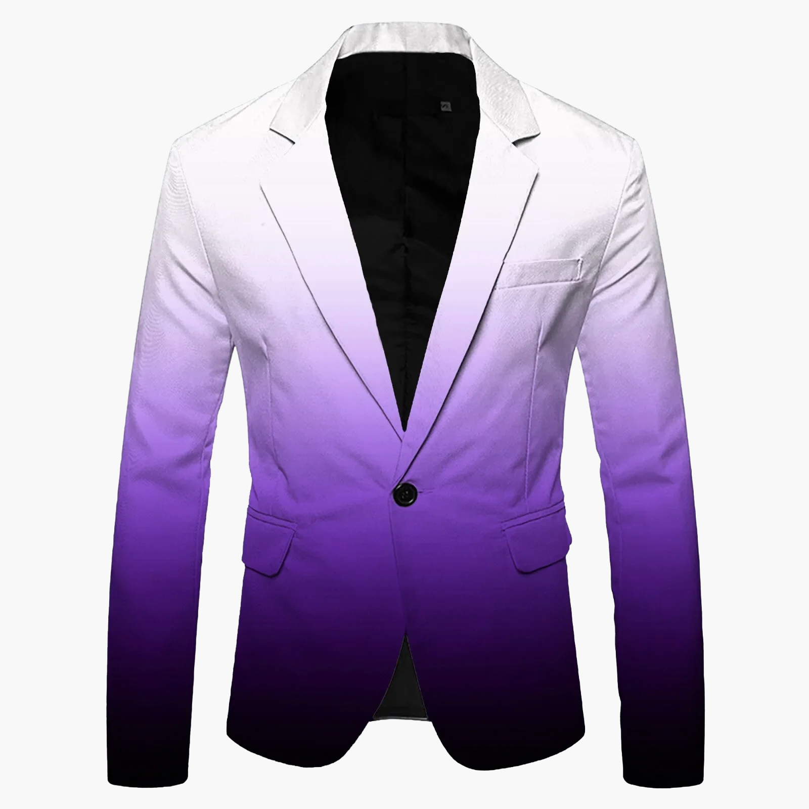 Dieses moderne Herren-Sakko überzeugt durch seinen angesagten Slim Fit Schnitt und ein einzigartiges Farbverlauf-Design, das Eleganz und Individualität perfekt vereint. Ideal für den Einsatz im Business, bei festlichen Anlässen oder trendigen Events – mit diesem Jackett setzen Sie ein modisches Statement. Die klare Linienführung und der klassische Ein-Knopf-Verschluss sorgen für einen stilvollen und selbstbewussten Auftritt. Praktische Pattentaschen bieten Platz für kleine Essentials. Kombinieren Sie den Blazer mit Hemd und Stoffhose für einen klassischen Look oder mit Jeans für ein smartes Freizeit-Outfit. Ein Must-have für modebewusste Männer, die Wert auf Stil und Vielseitigkeit legen.