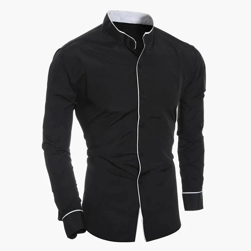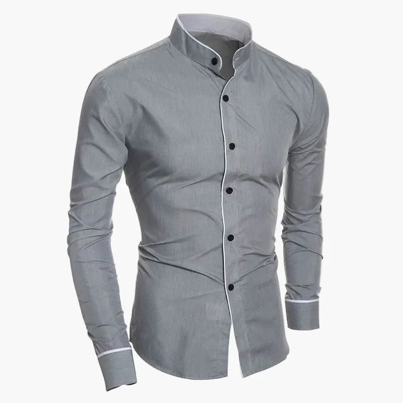 Entdecken Sie dieses stilvolle Herren Slim Fit Langarmhemd mit modernem Stehkragen, das sowohl im Büro als auch in der Freizeit einen eleganten Auftritt garantiert. Das Hemd überzeugt durch seine taillierte Passform und die edlen Paspelierungen entlang der Knopfleiste und Manschetten. Mit seinem klaren, minimalistischen Design lässt es sich vielseitig kombinieren – ob zu Jeans oder Anzughose. Perfekt für modebewusste Männer, die Wert auf einen gepflegten Look legen.