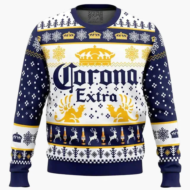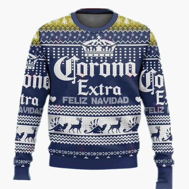 Herren Weihnachtspullover im Ugly Christmas Sweater Stil mit Corona Extra Motiv – Lustiger Party-Pullover