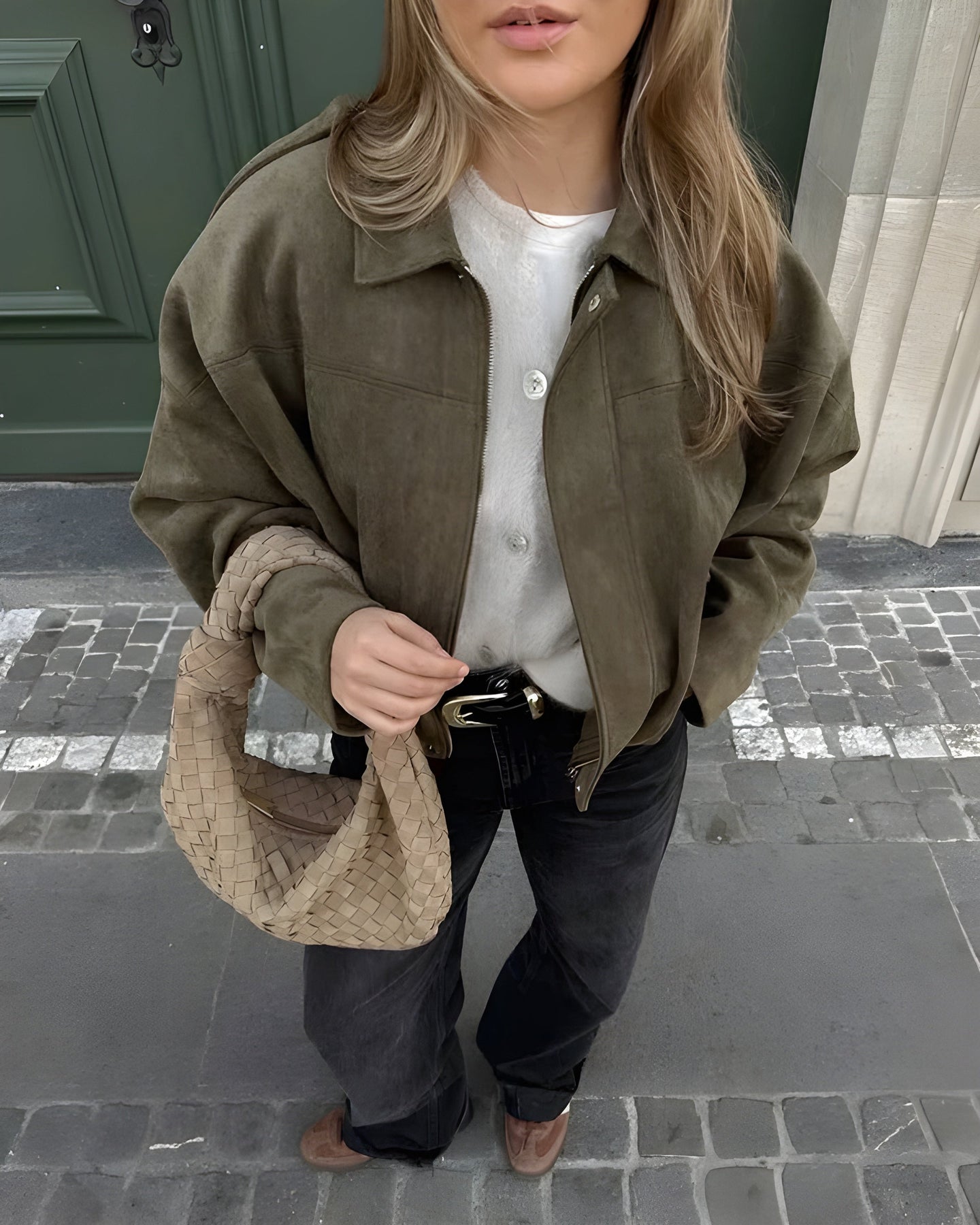 Geschlossene Jacken, steifes Material oder formlos geschnittene Passformen? Nicht mit der Josephine™ | Eleganten Wildleder-Bomberjacke! Diese Jacke fühlt sich seidig weich an, hat eine schmeichelhafte Oversized-Passform und eine verstellbare Taille für die perfekte feminine Silhouette. Ob bei einem Spaziergang oder stilvoll in der Stadt – Josephine verleiht jedem Outfit ein luxuriöses Upgrade.