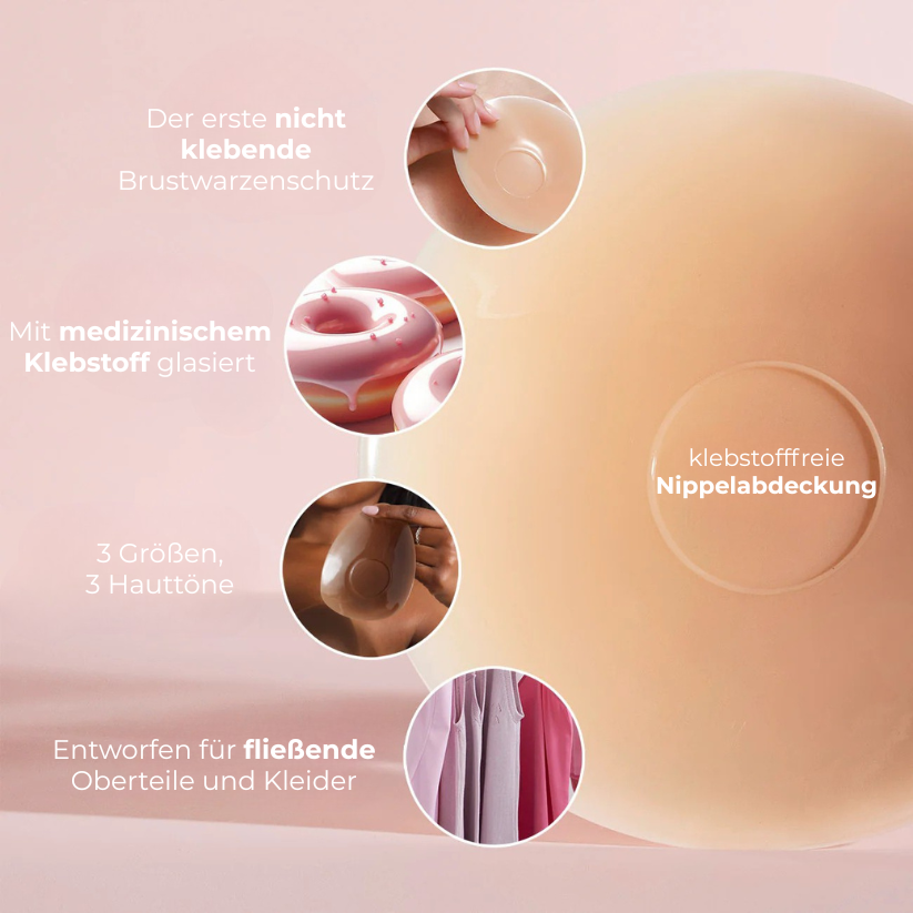 Mit den klebrigen Abdeckungen erhalten Sie sanften Halt, ohne zu reißen. Unser p-Design ist von Hand mit medizinischem Klebstoff um eine klebstofffreie Nippel-Ecke herum glasiert, um eine sichere Abdeckung zu gewährleisten, ohne dass Ihre Nippel abreißen!