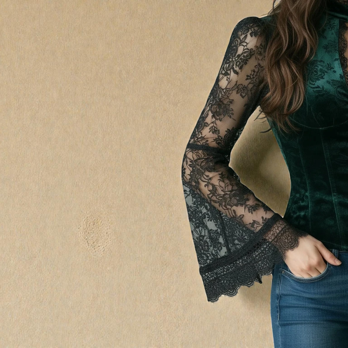 Mit LIVIA™ | Elegante Samtbluse mit Spitze entscheiden Sie sich nicht nur für ein Produkt – Sie entscheiden sich für ein Leben voller Freiheit, Eleganz und strahlender Freude.