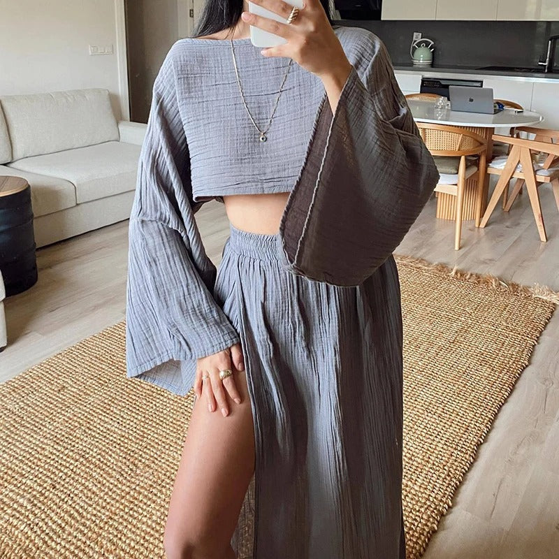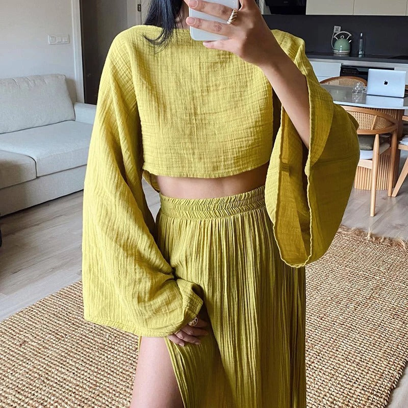 Entdecken Sie mühelose Eleganz mit den Nicole™ Casual Solid Cotton Linen 2-Piece Sets