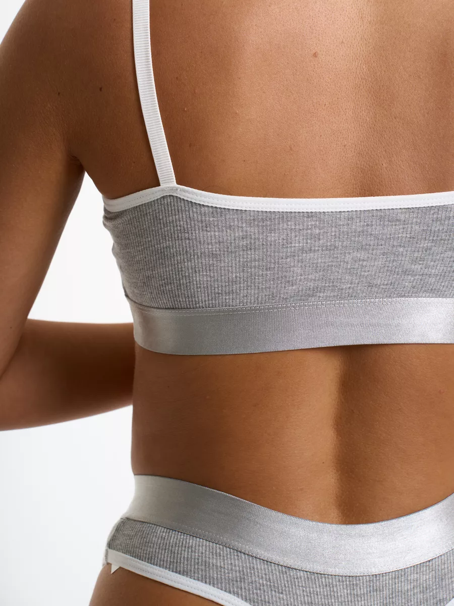 Das bügellose Bralette bietet leichten Halt und eine schmeichelhafte Passform. Ein elastisches Unterbrustband sorgt für zusätzliche Stabilität, ohne unangenehm einzuschneiden. Die passenden Slips schmiegen sich sanft an den Körper und bieten optimalen Tragekomfort. -
