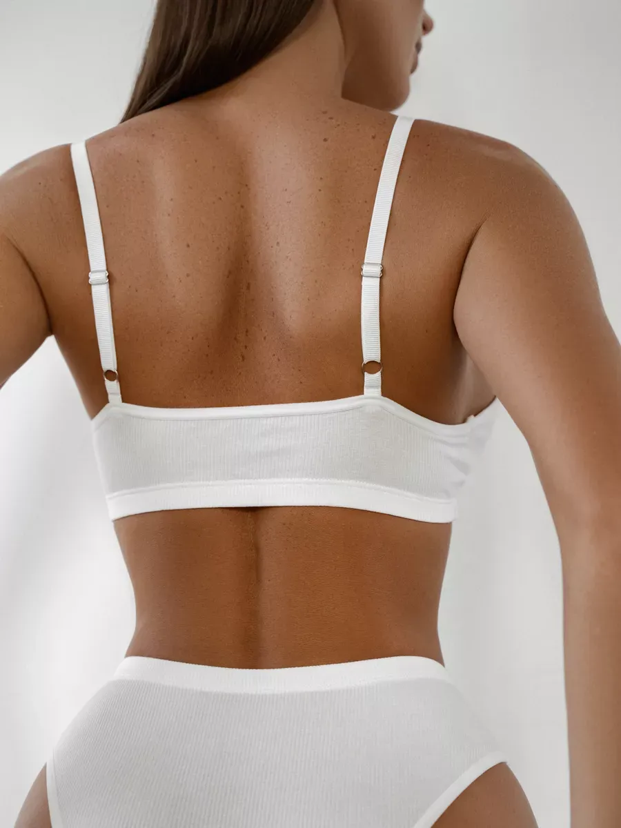 Das bügellose Bralette bietet leichten Halt und eine schmeichelhafte Passform. Ein elastisches Unterbrustband sorgt für zusätzliche Stabilität, ohne unangenehm einzuschneiden. Die passenden Slips schmiegen sich sanft an den Körper und bieten optimalen Tragekomfort.