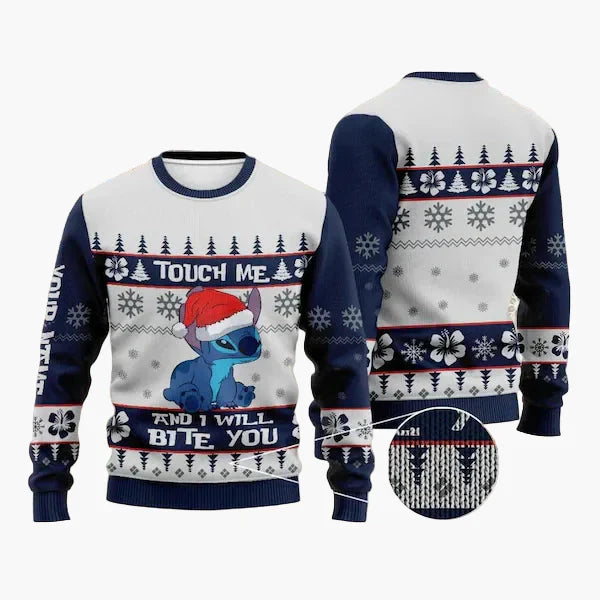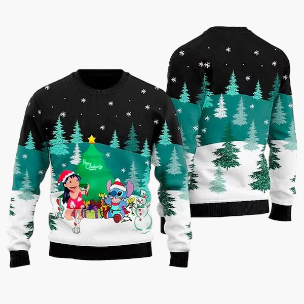 Feiere Weihnachten mit Stil und Humor – der Unisex Weihnachts-Pullover „Merry Stitchmas“ bringt garantiert festliche Stimmung in jede Runde! Das auffällige Design mit dem beliebten blauen Cartoon-Außerirdischen vor einem geschmückten Weihnachtsbaum ist ein echter Hingucker auf jeder Weihnachtsfeier, beim Familienfest oder als ausgefallener Look im Büro.