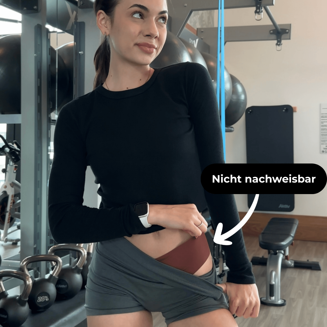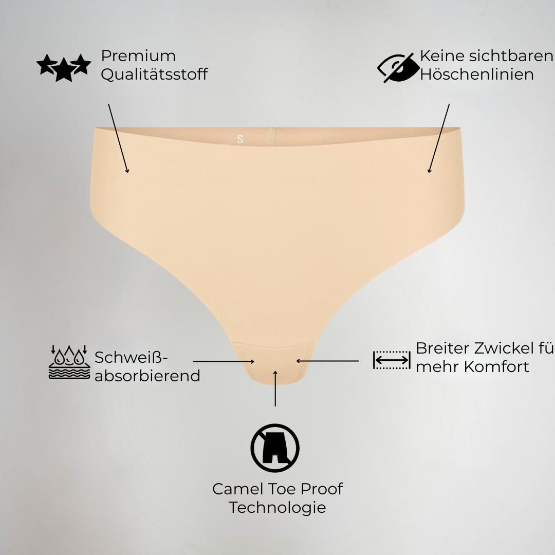 Unsichtbarer String mit Kamelzehe und hoher Leibhöhe